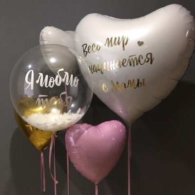 - Большое фольгированное сердце с индивидуальной надписью