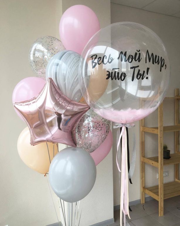 - Фонтан из шаров (6 шаров пастель, шар агат, 2 шара конфетти)