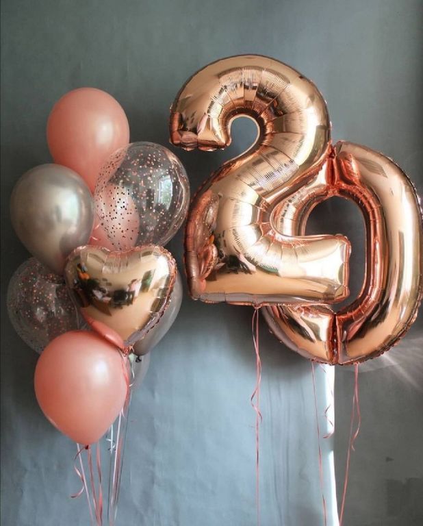 - Фонтан из деввяти шаров (фольгированное сердце, 2 шара с конфетти, 3 шара металлик, 3 шара пастель)