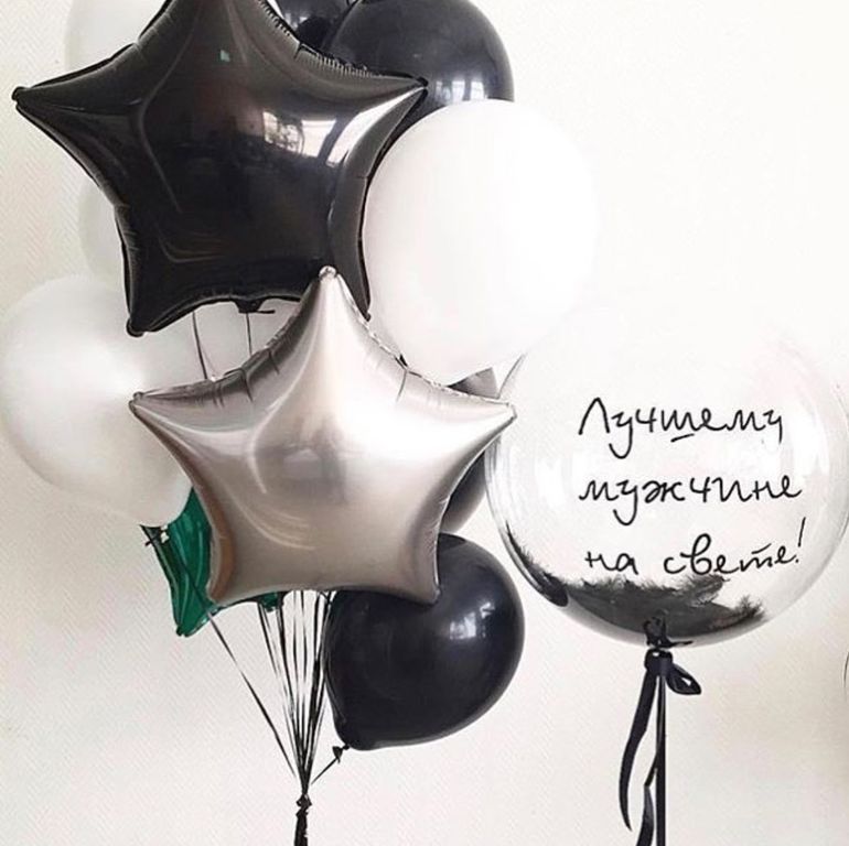 - Фонтан из одиннадцати шаров (3 фольгированных звёзды без рисунка и 8 шаров пастель)