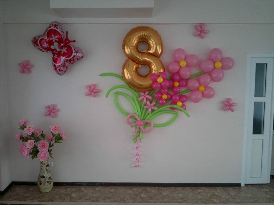 - Цифра с цветами из воздушных шаров.