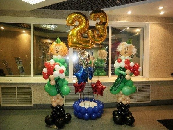 - Две фигуры солдатки с цветами из воздушных шаров