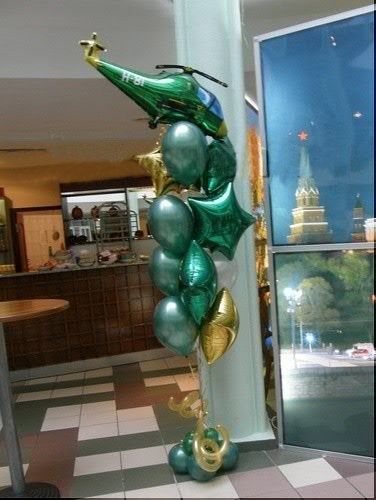 - Фонтан из десяти шаров (фольгированный шар вертолёт, пять фольгированных звёзд, четыре шара металлик)