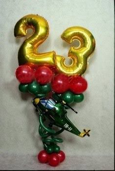 - Композиция с двумя фольгированными цыфрами на подставке и фольгированным вертолётом