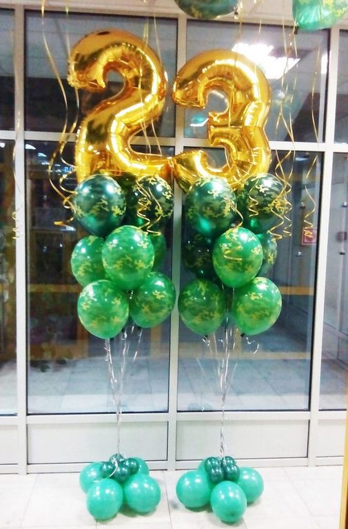- Два фонтана по десять шаров (цифра и 9 шаров камуфляж)