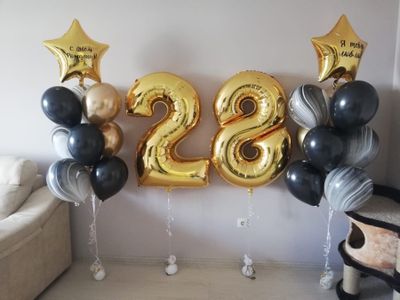 В композиции можно изменить количество шаров, цветовую гамму и надписи на шарах.
