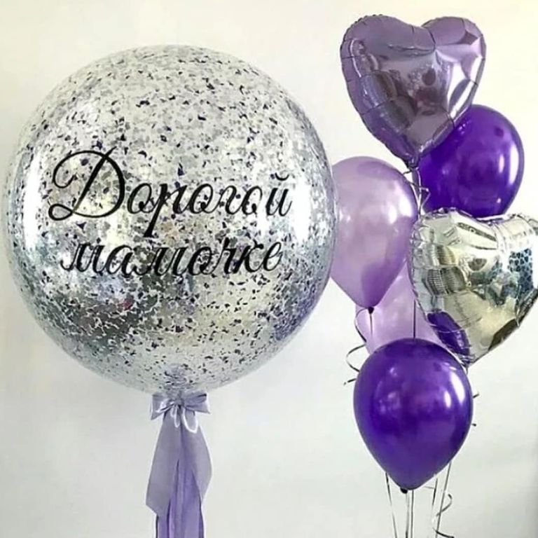 - Фонтан из шести шаров (2 фольгированных сердца, 4 перламутровых шара)