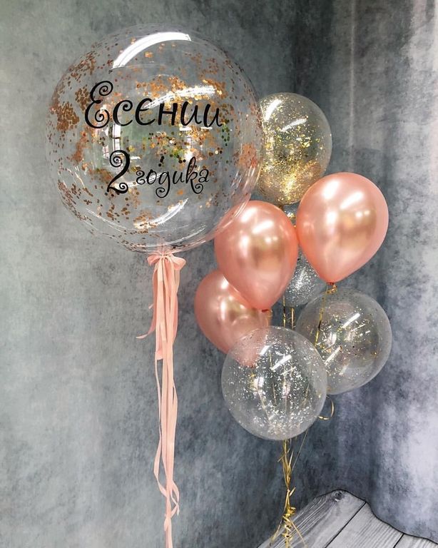 - Большой прозрачный шар баблс с надписью и конфетти