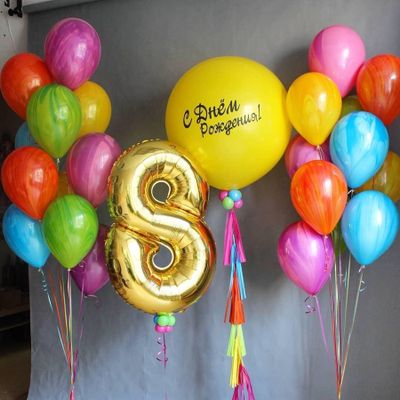 В композиции можно изменить количество шаров, цветовую гамму и надпись на шаре.
