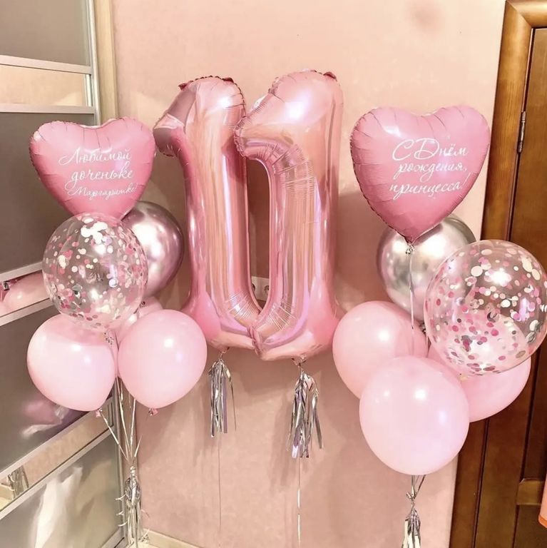 - Два фонтана по шесть шаров (сердце с надписью,шар хром, шар с конфетти, 3 шара пастель)