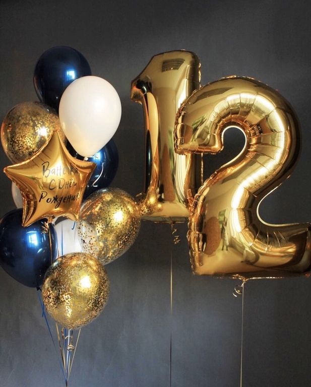 - Фонтан из десяти шаров (звезда с надписью, 3 с конфетти, 3 стеклянных шара, 3 шара пастель)