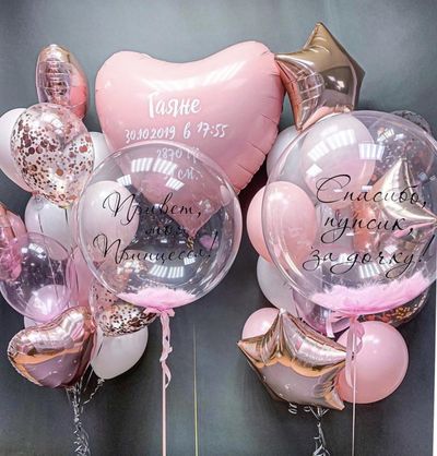 В композиции можно изменить количество шаров, цветовую гамму и надписи на шарах.