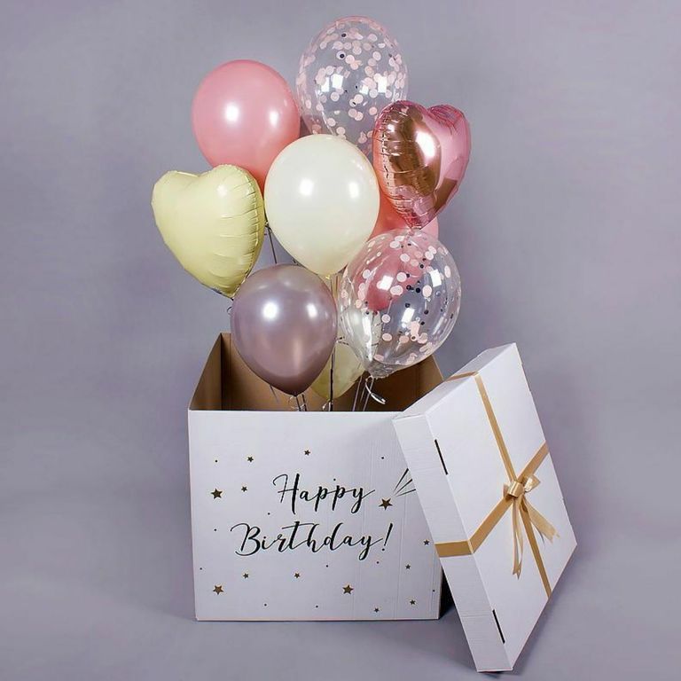 В композиции можно изменить количество шаров, цветовую гамму и изменить надпись на коробке.