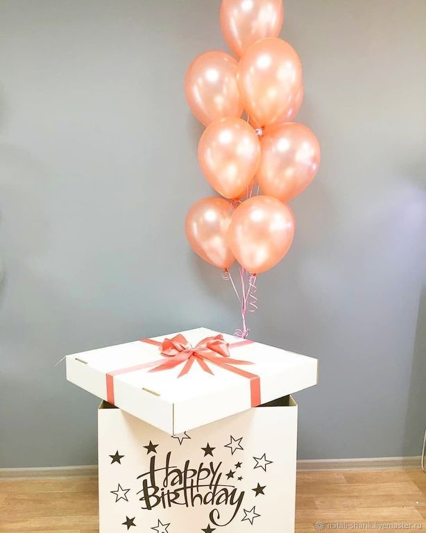 В композиции можно изменить количество шаров, цветовую гамму, добавить надписи на шары и изменить ёё на коробке.