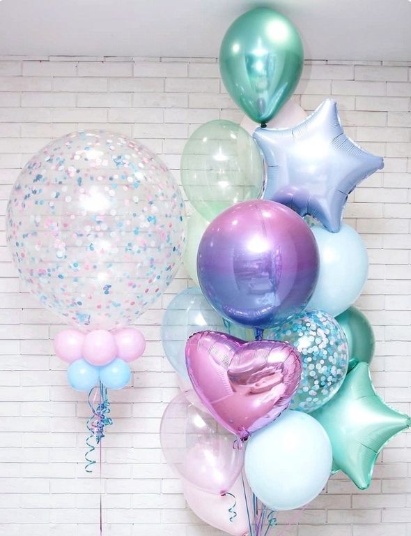В композиции можно изменить количество шаров, цветовую гамму и добавить надписи на шарики.