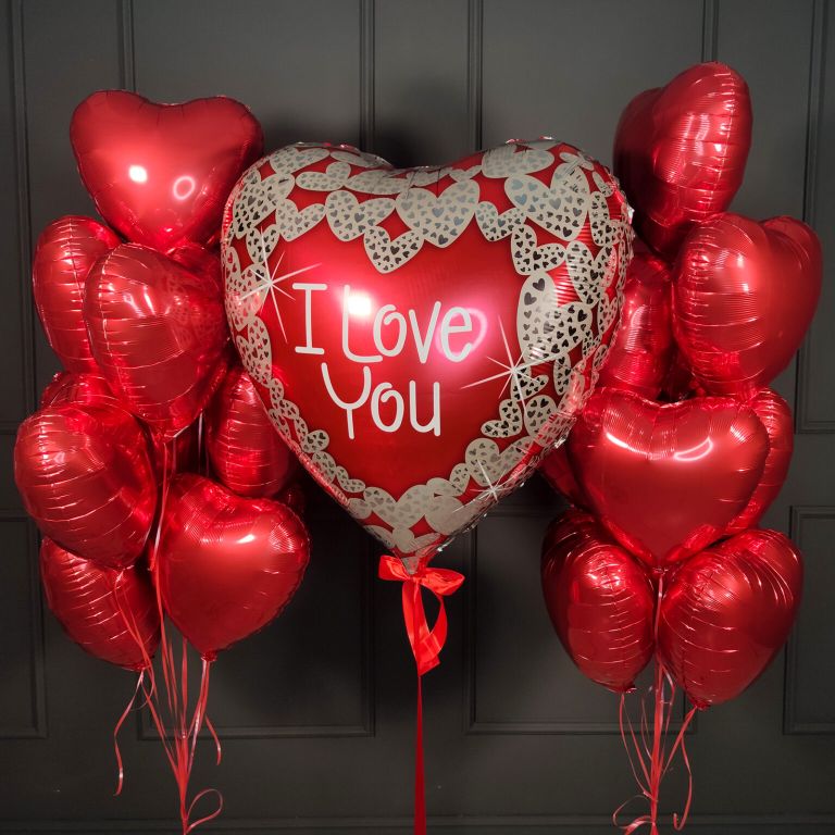 - Два фонтана по семь фольгированных сердец