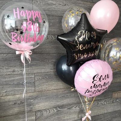Надпись может быть нанесена, как на фольгированный шар любой формы, так и на латексный любого размера.